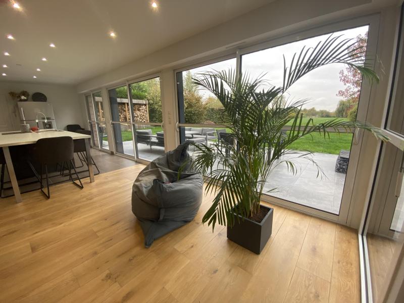 À Bourghelles, 6 km de Cysoing, Fym Immobilier vous invite à découvrir cette superbe villa contemporaine, nichée sur une parcelle exposée plein sud de plus de 3 500 m².