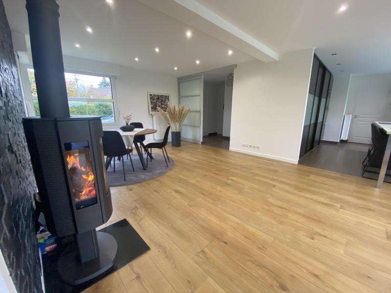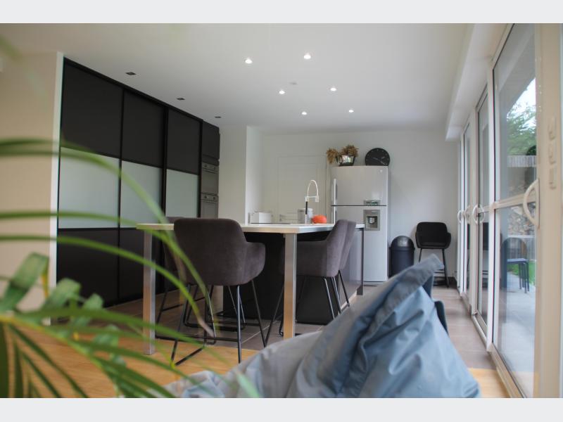 La cuisine équipée, à la fois moderne et fonctionnelle, s’intègre harmonieusement à cet espace convivial.