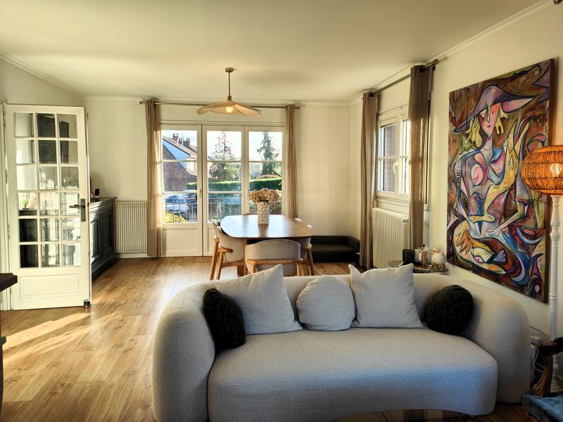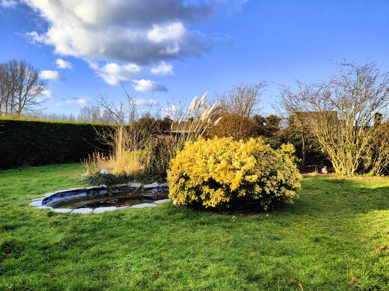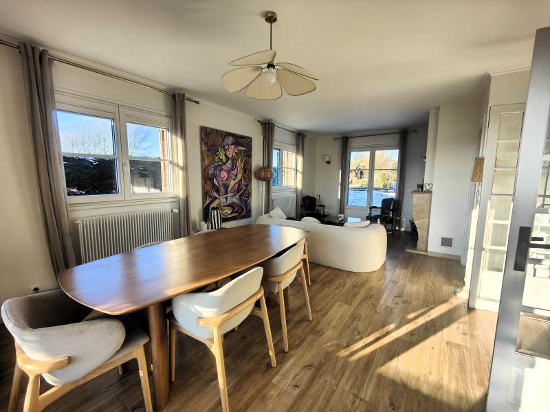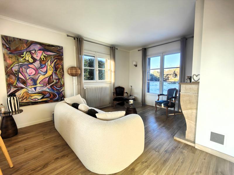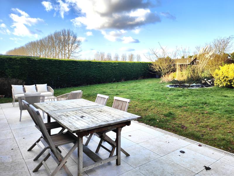 À l’extérieur, une vaste terrasse carrelée s’ouvre sur un jardin clos, arboré et sans vis-à-vis, idéal pour profiter pleinement des beaux jours en toute tranquillité.
