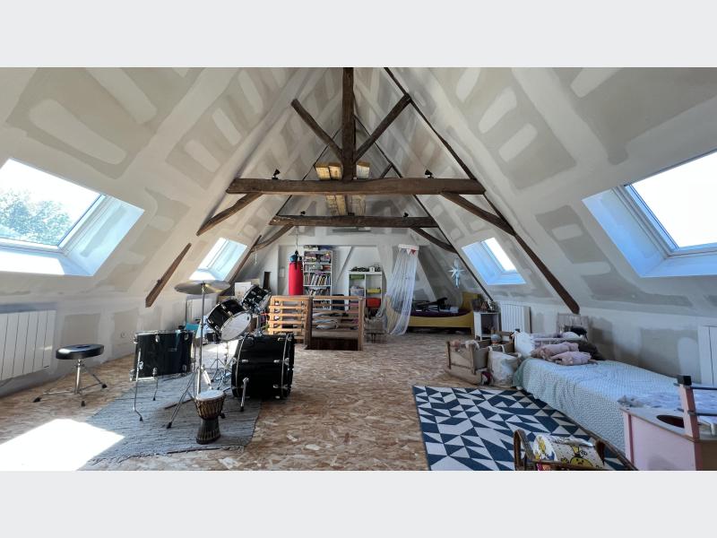 À l’étage, 3 grandes chambres, une salle de bains spacieuse et un grand dressing viennent compléter l’espace nuit. Le grenier, entièrement aménagé, offre une immense pièce polyvalente, idéale pour créer une suite parentale avec chambre et espace privé, ou un lieu de vie supplémentaire selon vos envies.